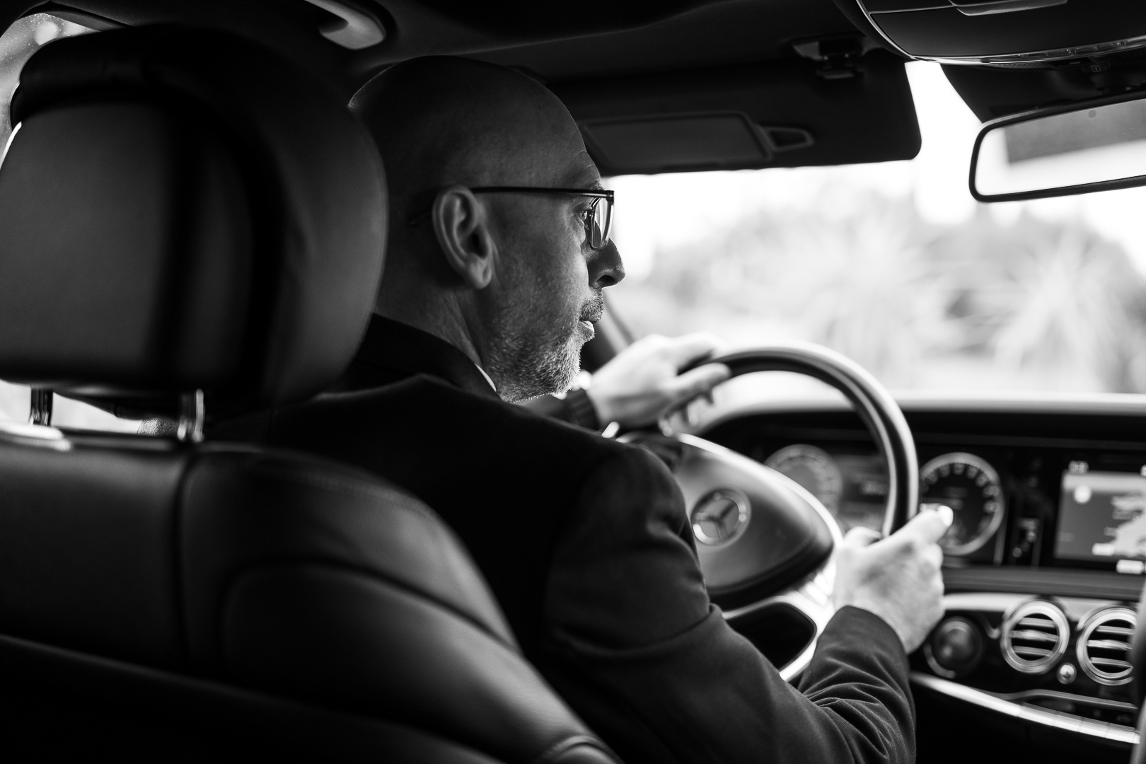 Je conçois chaque prestation dans le respect des plus hauts standards : tenue impeccable en costume et cravate, courtoisie et attention constante portée au confort et à la satisfaction de chaque passager.